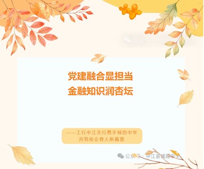 黨建融合顯擔(dān)當(dāng) 金融知識(shí)潤(rùn)杏壇——工行中江支行攜手城西中學(xué)共筑校企育人新篇章
