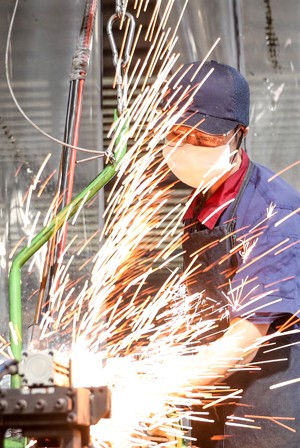 2023年7月25日,四川省廣安華鎣山經(jīng)開(kāi)區(qū)正梁機(jī)械加工廠的工人, 在焊花飛濺的高溫中加緊趕制與重慶、成都等地企業(yè)配套的機(jī)械產(chǎn)品,保障 “訂單”需求。