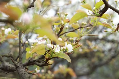 山頂古剎,名曰“佛來”,始建于唐貞觀年間。相傳玄奘西行歸來,曾于此駐錫講經(jīng),見山民苦于旱澇,遂授以植梨之法,祈愿“佛賜甘霖,梨蔭眾生”。寺中現(xiàn)存宋碑一方,銘文記載:“佛來山梨花,乃禪心所化,觀之可明性,食之可延年。”千年香火不絕,檐角銅鈴隨風(fēng)作響,梵唄之聲與花香交織,恰似東坡詩(shī)云:“花落僧衣凈,風(fēng)搖禪榻清”。寺內(nèi)壁間,歷代文人題詠斑駁可見。太白醉書“梨云萬(wàn)疊映空明,佛國(guó)春風(fēng)不染塵”,墨跡猶存;陸游曾留“古寺梨花三月雪,山門不掩待游人”之句,字里行間可見禪意與詩(shī)心交融。今人亦效仿古人,于廊下懸紙筆,任游客題詩(shī)寄懷,花影墨香,相映成趣。