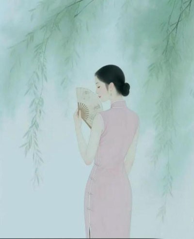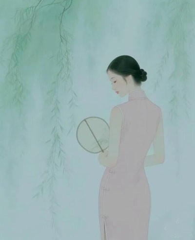 有佳人踱步,