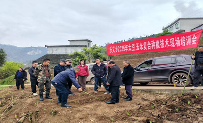 為了國(guó)家糧食安全,同時(shí)讓農(nóng)民種糧增收,2025年3月31日,筠連老科協(xié)秘書長(zhǎng)謝明生,率農(nóng)業(yè)專委會(huì)專家一行第二次來到樂義鄉(xiāng)陶坪村田間地頭,筠連縣農(nóng)業(yè)農(nóng)村局專家賈復(fù)生及縣林竹中心高級(jí)工程師徐遠(yuǎn),就國(guó)家種糧大戶的政策進(jìn)行現(xiàn)場(chǎng)解答,并對(duì)大豆玉米復(fù)合種植技術(shù)手把手進(jìn)行指導(dǎo)。