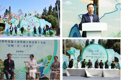 4月2日,由都江堰市老科協(xié)團體會員和會員單位四川都江堰青城茶葉有限公司、都江堰青城貢品堂茶業(yè)有限公司、四川都江堰灌城聯(lián)和茶業(yè)有限公司、都江堰市茅亭茶業(yè)有限公司、都江堰市程氏茶業(yè)有限公司、四川洞青茶葉有限公司、都江堰百年茶葉有限公司、成都茗門良匠有限公司、四川百朝烏龍茶業(yè)有限公司、都江堰茶仙子茶葉有限責任公司等承辦的成都市首屆茶葉技能大賽暨都江堰市第十九屆“青城三月三采茶節(jié)”在玉堂街道青城道茶現(xiàn)代農(nóng)業(yè)產(chǎn)業(yè)園舉行。本屆采茶節(jié)“祭茶圣、誦茶經(jīng)、采春茶”,以“非遺+科技+文旅”的創(chuàng)新模式,展現(xiàn)了都江堰茶產(chǎn)業(yè)轉(zhuǎn)型升級的全新圖景。