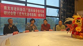 11月14號(hào),南充市老科協(xié)文教科體分會(huì)熱烈舉辦書畫藝術(shù)研討暨《莊為充詩畫選集》出版座談會(huì)。市老科協(xié)會(huì)長朱家媛,副會(huì)長楊興出席會(huì)議,市級(jí)文藝界知名會(huì)員計(jì)近20人參加活動(dòng)。朱家媛作指導(dǎo)講話,文教科體分會(huì)會(huì)長唐明元主持會(huì)議。