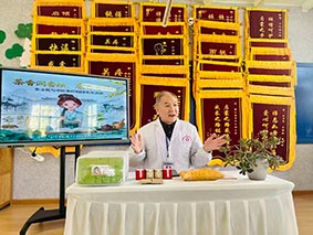 活動中,陳益長老中醫(yī)以“茶香潤杏壇,康養(yǎng)育師心”為主題,深入淺出地講解了中醫(yī)養(yǎng)生理念、季節(jié)健康調(diào)護及常見職業(yè)病的預防方法,并結(jié)合教師職業(yè)特點,現(xiàn)場演示了急救基礎技能。此外,他還為教師們提供了個性化的把脈診察與健康咨詢,耐心解答大家關于日常保健的疑問。
