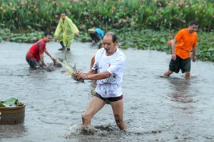 2023年9月22日,四川省廣安市各區(qū)市縣的選手在華鎣市祿市鎮(zhèn)涼水井村參加趣味活動“捉魚”比賽,在開心中慶祝中國農(nóng)民豐收節(jié)。