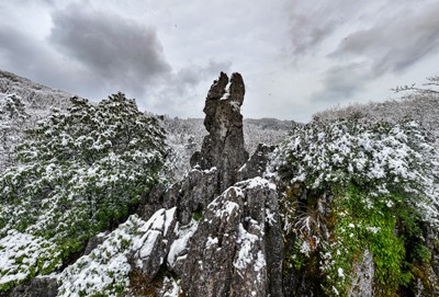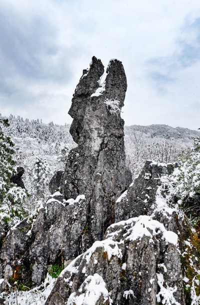 2025年1月10日,在白雪覆蓋的四川省廣安市華鎣山,一對(duì)形似情侶名為“千年一吻”(或“一吻千年”) 的巖石,在冰雪世界中演繹著“冰雪之戀”。