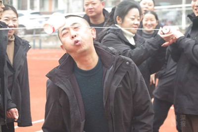 員工們根據(jù)自己的抽簽參加蜈蚣賽跑、拔河、貪吃蛇游戲、吹紙杯等比賽,參賽員工個個熱情高漲。
