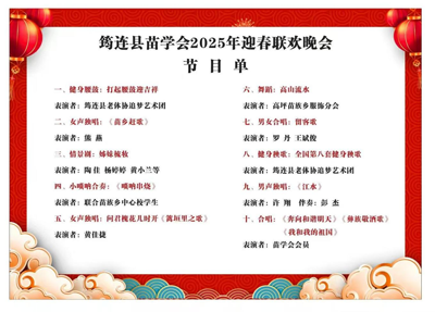 (筠連縣苗學(xué)會(huì)迎春聯(lián)歡晚會(huì)節(jié)目一覽)