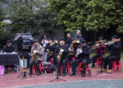 演出尚未正式開始,現(xiàn)場(chǎng)就已熱鬧非凡。協(xié)會(huì)樂隊(duì)中的邱宿峰、王學(xué)軍等資深音樂人率先登場(chǎng),他們演奏的多首迎賓曲旋律悠揚(yáng),為活動(dòng)暖場(chǎng),吸引眾多居民早早來到現(xiàn)場(chǎng),翹首以盼演出的正式開始。