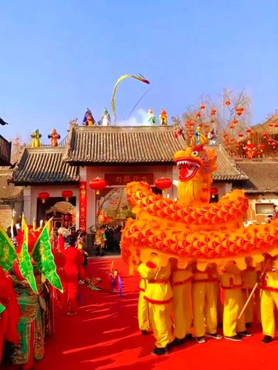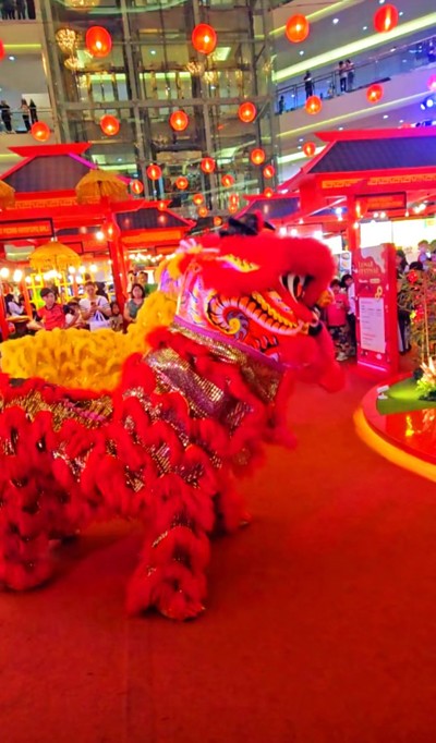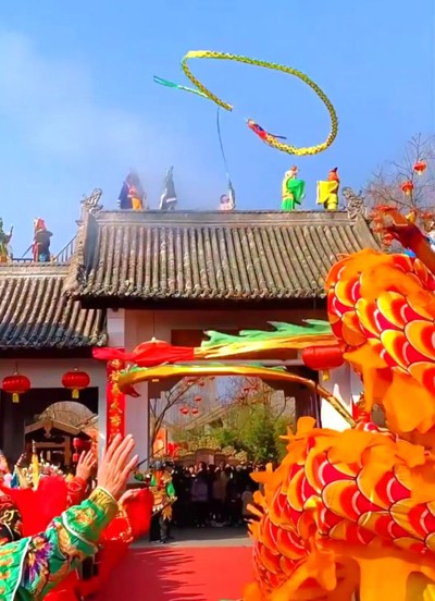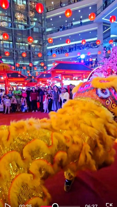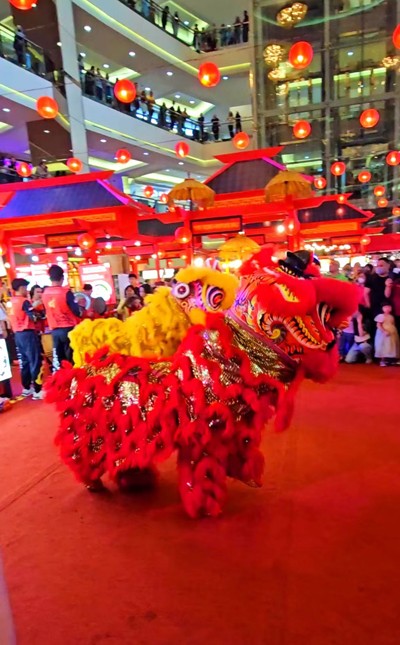 龍舞獅騰街巷鬧,燈懸彩掛韻聲飄。