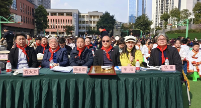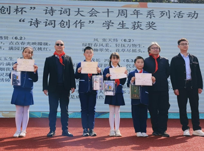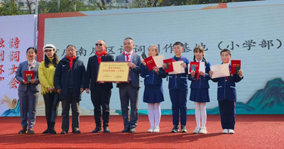 大會內(nèi)容精彩紛呈,有武術、巴烏表演、有經(jīng)典誦讀、有詩詞輪答,在點字成詩、詩詞接龍和飛花令環(huán)節(jié)中,天臺崗各校區(qū)的學生代表隊表現(xiàn)都十分出色,明確看出學生們對傳統(tǒng)詩詞的熱愛,也能感受到傳統(tǒng)詩詞對學生們的成長有著十分重要的意義,這種傳承就是民族文化自信的源泉,所以,本次詩詞大會獲得一等獎的馮子墨、張玉生、陳遇賢、張?zhí)鞜標拿瑢W,也獲得了加入南岸區(qū)作家協(xié)會機會,成為區(qū)作協(xié)最小的會員,指導老師聶雯倩也一同加入作協(xié),這代表著文學可持續(xù)發(fā)展。半川社長和憶卿社長為新晉學生會員頒發(fā)證書與獎狀的同時,楊金幫主席也授牌“重慶市南岸區(qū)詩詞創(chuàng)作基地(小學部)”予徐勇校長。