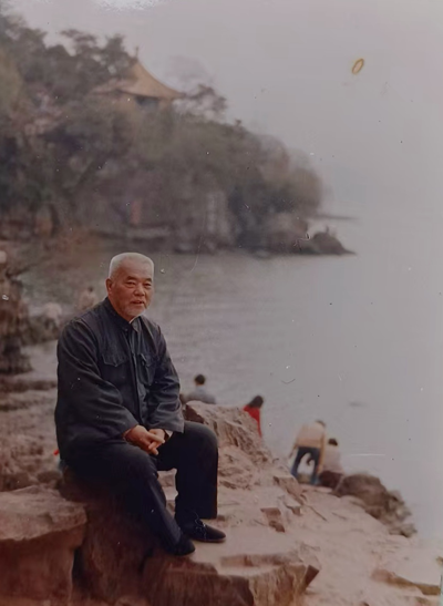榮泉源晚年回到故鄉(xiāng)無錫在老宅側(cè)太湖邊留影。他自1926年3月在上海進(jìn)入“申新紗廠(一廠)后,又至武漢(申新時(shí)年46歲。4廠),內(nèi)遷入陜,歷時(shí)近70年重返故鄉(xiāng),身體健壯,神態(tài)安詳。