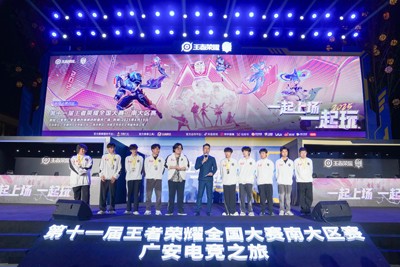 4月19日,第十一屆王者榮耀全國(guó)大賽南大區(qū)賽在四川省廣安市舉辦。來(lái)自四川、重慶、廣東、上海等18個(gè)省市的選手參加5V5、1V1和卡牌對(duì)決。5V5團(tuán)隊(duì)賽和1V1單挑賽均采用BO1雙敗淘汰+決賽BO3賽制,奪冠者將參加5月在湖北孝感舉行的全國(guó)大賽;參加卡牌對(duì)戰(zhàn)賽的選手可獲得現(xiàn)場(chǎng)專業(yè)人士指導(dǎo)體驗(yàn),完賽者可獲得精美小禮品。