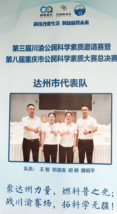在第三屆川渝公民科學(xué)素質(zhì)邀請賽暨第八屆重慶市公民科學(xué)素質(zhì)大賽總決賽中,達(dá)州代表隊(duì)作為四川省三支代表隊(duì)伍之一,與從重慶市38個(gè)區(qū)縣中脫穎而出的11支強(qiáng)隊(duì)同臺競技。他們沉著應(yīng)對、團(tuán)結(jié)協(xié)作,最終摘得“風(fēng)采獎(jiǎng)”,充分展現(xiàn)出達(dá)州兒女昂揚(yáng)奮進(jìn)、銳意爭先的精神風(fēng)貌。