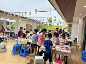 活動(dòng)開(kāi)始,假期學(xué)校的志愿者老師們首先讓孩子們自由組合小組,確立小組長(zhǎng)。接著小組長(zhǎng)給組員們分工。緊接著志愿者老師指導(dǎo)孩子們?cè)?/span>樣洗菜,手把手地教孩子們切菜。一切準(zhǔn)備工作就緒。老師就指導(dǎo)孩子們炒菜和煮面。整個(gè)體驗(yàn)過(guò)程井然有序地進(jìn)行。一份份親手做出的菜肴擺上桌。孩子們吃著自己親手做的有鹽無(wú)味的炒菜總覺(jué)得比任何美食還好吃,因為它是自的勞動(dòng)成果。這時(shí)小朋友心中只有滿滿的成就感。最后每個(gè)一小組一起收拾打掃衛(wèi)生,洗餐具、掃地、收拾桌面,大家分工進(jìn)行。最后決出本次廚趣體驗(yàn)活動(dòng)小組排名。