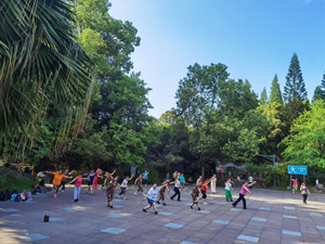酷熱難當(dāng)。可四川成都雙流區(qū)東升棠湖公園旁的廣埸上,動聽的歌聲沖破云宵在公園旁回蕩,柔力球洋洋酒酒地飛旋翻滾,隊(duì)員們滿面流淌汗水再顯出芳華,好象給寬寬廣埸增添了獨(dú)特的美麗風(fēng)景,引來了過路人立足觀望感嘆:"這些人真是不怕熱不怕累的鐵娘子喲"!是呀,這類的話語常常都能聽到,贊揚(yáng)聲多多!