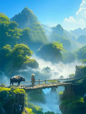 古南溪境內那時還沒有龍寶山這一地名。只是由于有太上老君的九轉還魂丹這一仙丹的滋養(yǎng),使得這一帶山青水秀,常年風調雨順,好一派田園風光。那匹山坡下有一個名叫平坳村的小村莊,分散住著二十多戶百十口人,過著日出而作日落而息、夜不關門路不拾遺,與世無爭的平靜日子。