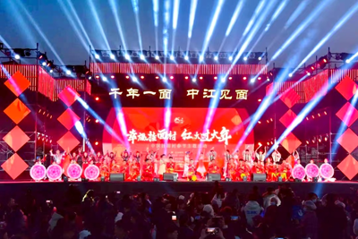 四川.中江:網(wǎng)紅鄉(xiāng)村丨千年一面,中江見面:“中國掛面村”。大年三十、除夕之夜,在“中國掛面村”游客服務中心廣場上熱鬧非凡,舞臺上的“村晚”演出氣氛熱烈,臺下放置的260余張圓桌坐滿了人,大家歡聚一堂,吃著年夜飯、看著“村晚”,臉上滿滿的幸福與喜悅,愜意生活,溫馨無比。