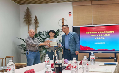 發(fā)布會后,文體旅局副局長代軍和該書主筆衛(wèi)志中共同向郫都區(qū)文化館贈送了新書。