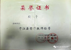 吉林,高級(jí)教師,中國民主進(jìn)步促進(jìn)會(huì)會(huì)員,中江縣第15屆政協(xié)委員,德陽市優(yōu)秀教師,中江縣骨干教師。