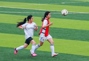 2023年12月14日,四川省華鎣市進入2023年初中生校園足球總決賽的男女足球隊,在華鎣二中的綠茵場上爭奪冠亞軍。
