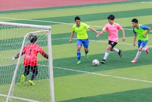 12月14日,四川省華鎣市進入2023年初中生校園足球總決賽的足球隊,在華鎣二中的綠茵場上爭奪冠亞軍。