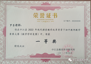 羅蓉,女,中江縣城西中學(xué)數(shù)學(xué)教師,中江縣師德標兵,中江縣學(xué)科優(yōu)秀教師,中江縣城西中學(xué)優(yōu)秀輔導(dǎo)教師,覃定亮名師工作室成員,中江縣青年教師素養(yǎng)大賽復(fù)賽一等獎、決賽二等獎。