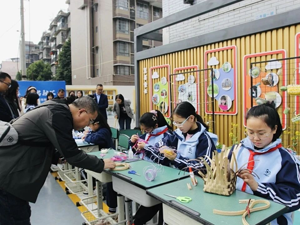 在慧美講解員的帶領(lǐng)下,與會(huì)人員參觀了我校校園文化及綜合實(shí)踐成果展。近年來,我校從時(shí)代需要出發(fā),立足“五育”,用文化育人,環(huán)境育人,多舉措培養(yǎng)學(xué)生綜合素養(yǎng)。現(xiàn)場(chǎng)展示中,稻草娃娃憨態(tài)可愛,扎染布偶活靈活現(xiàn),兒童繪本生動(dòng)有趣,創(chuàng)意編程嚴(yán)謹(jǐn)有序,科技小制作創(chuàng)意十足,感恩主題作品溫馨美好……當(dāng)然,孩子們還現(xiàn)場(chǎng)展示的非遺技藝——柳編、木刻版畫、泥塑、扎染、折紙等,得到了與會(huì)人員的稱贊!