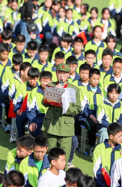2024年10月15日,革命老區(qū)四川省華鎣市戰(zhàn)斗英雄張昌仁,在華鎣二中向?qū)W生講述自己在保家衛(wèi)國中親身經(jīng)歷的戰(zhàn)斗故事,激發(fā)學(xué)生愛國主義精神和對國防事業(yè)的興趣、熱愛。