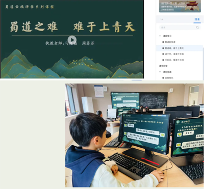 直播課上主講人李青老師和劍門關(guān)講解員楊老師,通過線上線下聯(lián)動的互動形式,設(shè)計了蜀道詩詞飛花令、隨機(jī)抽答、同步任務(wù)等交互設(shè)計,實現(xiàn)9地20校近1800師生之間無障礙溝通,打破時空的隔閡,激發(fā)課堂活力。