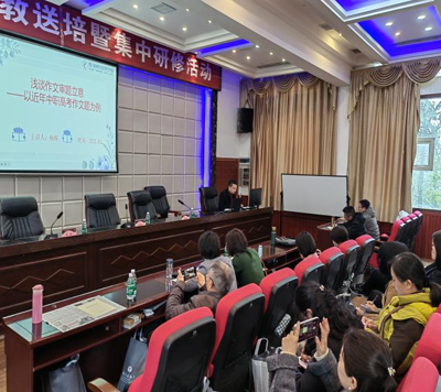 下午,工作室青年成員楊輝、領(lǐng)銜人傅洪成分別作專題講座。楊輝以《淺談作文審題立意——以近年中職高考作文題為例》為主題,結(jié)合真題解析,系統(tǒng)梳理作文教學(xué)的重難點與突破方法;傅洪成則聚焦《創(chuàng)設(shè)中職語文語言運用情境,提升中職學(xué)生語文學(xué)科素養(yǎng)》,通過理論闡釋與實踐案例,為教師提供提升學(xué)生語文學(xué)科素養(yǎng)的具體路徑。
