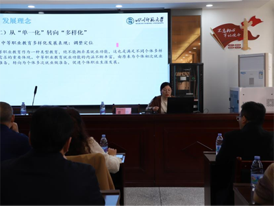 4月9日,四川師范大學(xué)碩士生導(dǎo)師、成都市職業(yè)技術(shù)教育學(xué)會(huì)秘書曾歡教授作《新時(shí)代中職高質(zhì)量發(fā)展的給予、挑戰(zhàn)與突破》專題講座;該教授圍繞把握新時(shí)代職業(yè)教育高質(zhì)量發(fā)展的路徑與策略、聚焦項(xiàng)目,激發(fā)活力,系統(tǒng)推進(jìn)高質(zhì)量發(fā)展兩個(gè)方面講述如何推動(dòng)學(xué)校內(nèi)涵建設(shè),實(shí)現(xiàn)職業(yè)教育的高質(zhì)量發(fā)展,提出要在黨建引領(lǐng)和思想政治工作、長(zhǎng)遠(yuǎn)發(fā)展和高質(zhì)量發(fā)展、高水平人才培養(yǎng)和高水平專業(yè)建設(shè)、師資隊(duì)伍建設(shè)、提升治理體系和治理能力六個(gè)方向上下功夫,要以績(jī)效考核賦能,充分激發(fā)干事創(chuàng)業(yè)內(nèi)生動(dòng)力、打造“工匠之師”,暢通所有教師向上發(fā)展通道、深化產(chǎn)教融合,提高專業(yè)發(fā)展的能力三個(gè)重點(diǎn)舉措,從而實(shí)現(xiàn)學(xué)校的高質(zhì)量發(fā)展。