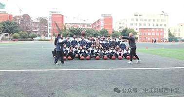 謝守江老師在學(xué)校操場,指導(dǎo)八年級 1 班的學(xué)生進(jìn)行《籃球中考繞桿訓(xùn)練》,標(biāo)準(zhǔn)的示范、細(xì)致的糾錯,助力同學(xué)們攻克中考難點,在奔跑跳躍中錘煉技能;趙小樂老師則帶領(lǐng)七年級 2 班的學(xué)生,練習(xí)《籃球雙手胸前傳球》,耐心講解動作要領(lǐng),讓每一位學(xué)生都能扎實掌握技能,在運動中收獲快樂與成長。