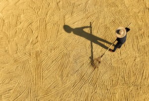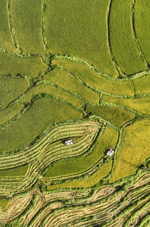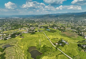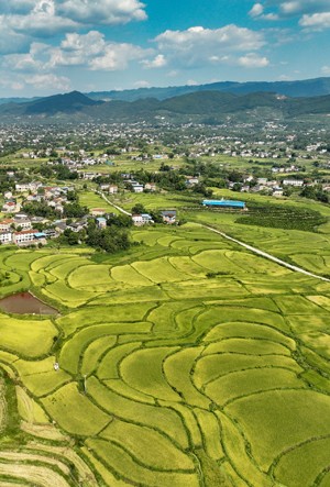 初秋時節(jié),位于四川東部的廣安市種植的約200萬畝水稻相繼成熟,?連片翻著金浪的水稻猶如鋪設在大地上的“金色地毯”,在藍天白天映照下,把山村裝點得格外美麗。當?shù)剞r(nóng)民在田間忙碌搶收水稻,確保稻谷顆粒歸倉。