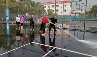 除日常清潔,謝淑蓉還承擔(dān)起義務(wù)開門的職責(zé)。她總是最早開門,最晚鎖門離開。即便球隊只要求她負(fù)責(zé)上午時段,為方便下午打球的球友,她不惜往返七八公里,做到隨叫隨到。球場設(shè)施損壞時,她也主動維修,圍網(wǎng)脫落,她找來繩子爬上梯子固定;掃把撮箕壞了,她用木棍、線修補。