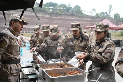 當(dāng)日,志愿服務(wù)隊(duì)隊(duì)員們還體驗(yàn)了野外就餐和拉歌比賽等,在訓(xùn)練中錘煉隊(duì)伍素質(zhì)。(記者 蔣兵)