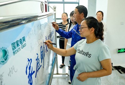 2025年6月24日,國家電網(wǎng)四川省華鎣市供電公司紅巖供電所的員工家屬,與親人一起在“家庭助安”公示欄上簽字接受監(jiān)督。(邱海鷹 任 勇/攝影報道)