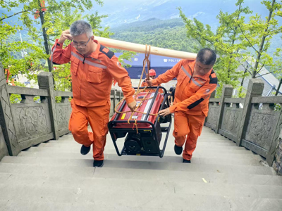 由于寶鼎地處川渝交界的四川省華鎣市溪口鎮(zhèn),雖行政區(qū)劃屬四川,主供電源卻由國網(wǎng)重慶市北供電公司負責。為確保廟會期間電力供應萬無一失,兩地供電企業(yè)迅速聯(lián)動,構建起電力聯(lián)合保障機制:華鎣公司高興供電所承擔寺廟核心負荷保電及殿宇間階梯夜間照明任務,重慶市北供電公司則投入1臺應急發(fā)電車作為備用電源。雙方還通過聯(lián)合應急演練,磨合隊伍、檢驗預案,充分展現(xiàn)了跨區(qū)域協(xié)同作戰(zhàn)的強大合力。