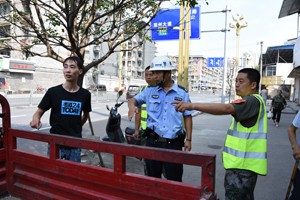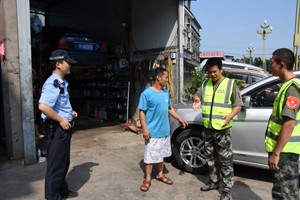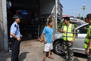 “老板,請你出來給你宣傳一下,這里是行人過路的地方,不能把車子停放在這里。”“不好意思,車子出了故障,馬上修理后就開走。”在G348國道旭陽鎮(zhèn)觀斗山路段,隊員劉琴、程偉正在對車主做宣傳。