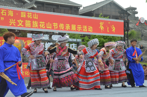為推動(dòng)文旅產(chǎn)業(yè)發(fā)展、促進(jìn)文旅市場(chǎng)消費(fèi),全面提升興文城市形象,興文縣按照“景城聯(lián)動(dòng)、政企互動(dòng)”的辦節(jié)思路,于2024年4月22日在風(fēng)景秀麗的石海景區(qū)舉辦以“浪漫石海·踩花山”為主題的“2024年四川·興文苗族花山節(jié)”按照花山節(jié)組委會(huì)的安排部署,興文縣苗族文化促進(jìn)會(huì)組織開展了祭花桿、祭祀舞、聯(lián)歡舞、苗族文藝節(jié)目表演、擠蘆笙競(jìng)賽、苗族女士盛裝展演賽等15項(xiàng)活動(dòng)內(nèi)容。