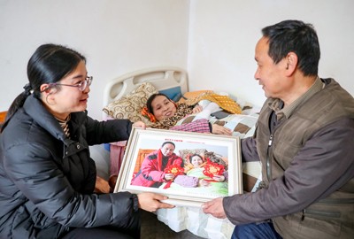2025年2月28日,四川省廣安華鎣市的志愿者專程把“全家福”送到古橋街道古橋社區(qū)因幾十年照顧癱瘓在床的妻子獲得“中國好人”殊榮的趙玉春家中。