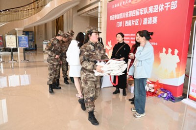 “您好,歡迎來到榮縣,我?guī)湍嵝欣睿 薄澳茫@邊報到,報到后我引您去吧臺領(lǐng)取房卡。”文明的語言、熱情地服務(wù),以東道主身份出現(xiàn)的自貢“江姐老兵”志愿服務(wù)隊(duì)榮縣分隊(duì)的隊(duì)員們,3月31日午后,就身著整潔的迷彩志愿服,協(xié)助市縣退役軍人事務(wù)局工作人員,在榮縣松悅酒店迎接著來自川南片區(qū)10個市州11個代表隊(duì)的軍隊(duì)離退休門球運(yùn)動員。