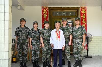 范志華曾是中國軍史上第一支傘兵部隊(duì)的傘兵,曾在緬甸和廣東等地參加過抗日作戰(zhàn),經(jīng)歷過大大小小多次戰(zhàn)役。如今,6名子女輪流照料他和93歲的老伴。隊(duì)員們圍在他身邊,聆聽他講述曾經(jīng)的烽火硝煙。