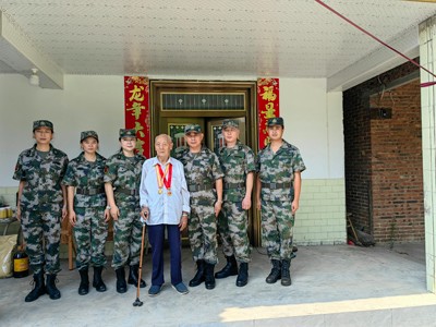 “戰(zhàn)友戰(zhàn)友親如兄弟,革命把我們召喚在一起……”臨別時(shí),當(dāng)隊(duì)員唱響嘹亮的《戰(zhàn)友之歌》時(shí),老人的眼眶飽含熱淚,看到這一群“迷彩”隊(duì),仿佛回到了昨天的軍營。“向抗戰(zhàn)老兵范志華敬禮!”隊(duì)員們用標(biāo)準(zhǔn)的軍禮向老人告別。