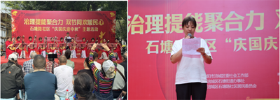 民樂演奏《唱支山歌給黨聽》二胡的悠揚(yáng)婉轉(zhuǎn)與竹笛的清亮明快交織,熟悉的旋律一響起,臺(tái)下居民紛紛跟著輕聲哼唱,不少老人還輕輕打著節(jié)拍,絲竹聲里滿是對(duì)黨的赤誠熱愛,穩(wěn)穩(wěn)拉開了活動(dòng)的序幕。石塘路社區(qū)黨委書記、居委會(huì)主任李蓉詳細(xì)介紹了社區(qū)治理“提能力”項(xiàng)目的計(jì)劃安排,從“服務(wù)理念”到“服務(wù)內(nèi)容”,每一項(xiàng)規(guī)劃都緊貼居民日常生活需求,更送上了真摯的雙節(jié)祝福,現(xiàn)場(chǎng)掌聲此起彼伏,滿是居民對(duì)社區(qū)工作的認(rèn)可與期待。
