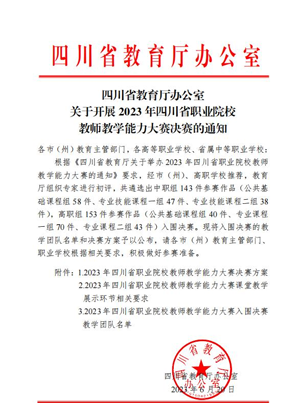 在四川省2023年職業(yè)院校教師教學(xué)能力比賽中,工作室青年成員胡琴琴老師負(fù)責(zé)的團(tuán)隊(duì)作品進(jìn)入省級決賽名單。