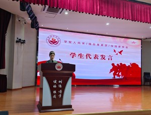 學(xué)生代表發(fā)言,她表示將以軍人為模范,以飽滿的熱情,敢于拼搏的精神,不畏辛苦的品質(zhì),全身心投入到軍訓(xùn)中去。