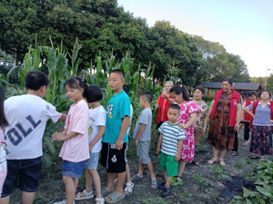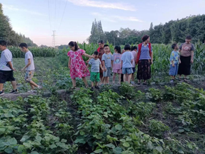 由于近期近40℃的高溫,臨江關(guān)工小組避開高溫時段,晚飯后,臨江關(guān)工小組組織10名五老志愿者和20名少年兒童進行社會實踐活動。活動分5個小組,每2名五老志愿者帶領(lǐng)4個少年兒童深入田間地頭,認識農(nóng)作物,講述播種、管理、收獲的全過程,盡管都是農(nóng)村孩子,但他們從未接觸過農(nóng)事,邊聽五老講述,邊提出問題:“水稻育小秧苗要多久,移栽多久才收割?”說到收割水稻,幾個孩子很興奮:“收割機可厲害了,一會兒就要收割一大片!”“我奶奶告訴我:‘谷子表面很多毛毛,不要去弄,弄了身上會癢癢的,很難受!’”經(jīng)過一塊菜地,孩子爭先恐后:“這是豇豆,那個是茄子,那邊的是辣椒!”五老耐心地向孩子們講解每種植物的生長期,管理的辛苦,讓孩子懂得了“鋤禾日當午,汗滴禾下土,誰知盤中餐,粒粒皆辛苦”的真正意義。聽了爺爺奶奶的講述。孩子們表示,每粒糧食都來得不容易,以后我們要愛惜糧食,節(jié)約糧食。