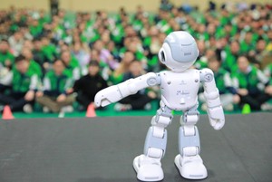2023年11月13日,機器人在四川省華鎣市雙河小學為學生跳舞。