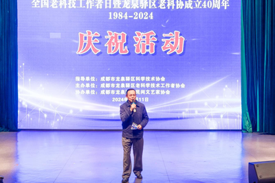 活動主持人在主持詞中深情地回顧了龍泉驛區(qū)老科協(xié)四十年來科技為民志愿服務的奮斗歷程,并介紹了四十年來龍泉驛區(qū)老科協(xié)受中國老科協(xié)等單位表彰9人、省老科協(xié)等單位表彰12人、市老科協(xié)等單位表彰36人。其中區(qū)老科協(xié)黨支部書記王倫義曾榮獲中國老科協(xié)獎、四川省委組織部全省離退休干部先進個人獎、成都市委老干部局最美志愿者稱號以及成都市委宣傳部“唱響成都”首屆基層理論宣傳大賽特別貢獻獎;區(qū)老科協(xié)會長唐俊林獲得中國老科協(xié)獎、四川省老科協(xié)優(yōu)秀共產黨員老科技工作者稱號、四川省老科協(xié)先進老科技工作者獎。在慶祝活動中,區(qū)老科協(xié)會長唐俊林宣讀了《關于授予龍泉驛區(qū)老科協(xié)“突出貢獻獎”、“十佳科技為民志愿服務會員獎”的決定》。